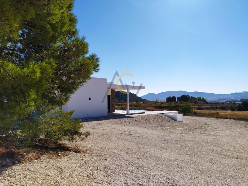 Exterior walls built with Ytong concrete blocks. Electric aluminium shutters. Air conditioning by ducts preinstalled. Private swimming pool 4×8 and a lovely sun terrace around the pool. Garage. Fenced 3.500 m2. Just 5 minutes drive to the village of La Romana where you have all services and amenities such as bars, coffe, shops, restaurants, school, doctor center, …Distance to Alicante airport just 35 minutes drive. Distance to the best sandy beaches of the Costa Blanca just 40 minutes drive. Please, contact us for furhter details and to arrange a viewing.