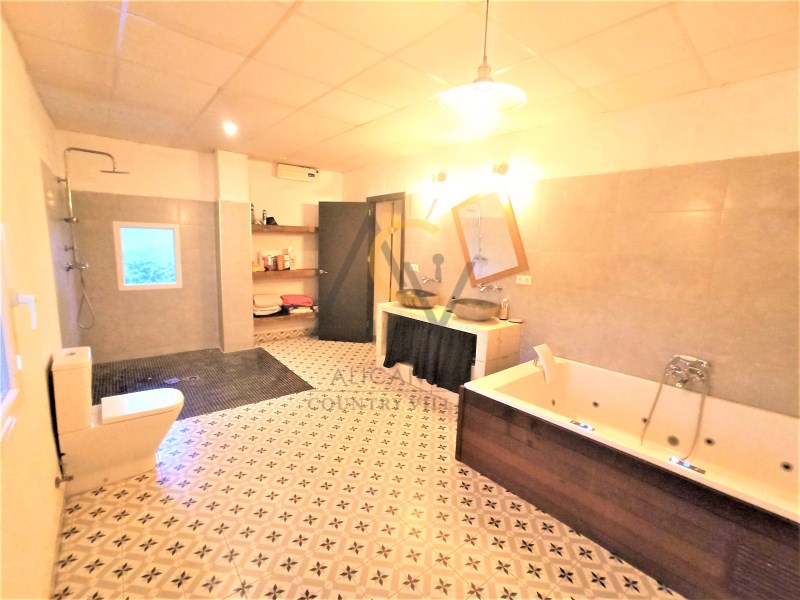 The ground floor is distributed as follows, a large living / dining room with wood burning fireplace, a separate kitchen with Italian stove-oven and pantry, a bathroom with shower, a large separate dining room through which we have access to the heated pool and the interior patio with covered barbecue.
