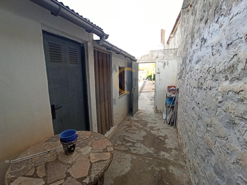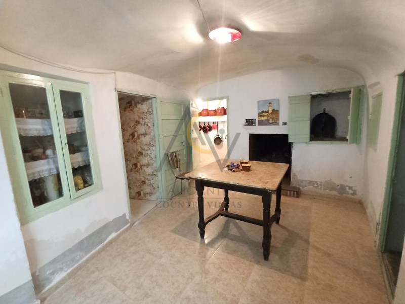 The semi-detached house is distributed in a living room with a wood-burning fireplace and pantry, another living room that can be fitted out as a bedroom, a double bedroom with a window to the terrace, a single bedroom (interior) and another room used as a storage room with access to the interior patio. The interior patio, with access from the house or through the terrace, leads to the kitchen, the bathroom with shower and a small storage room.